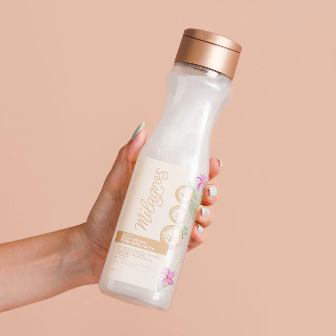The Milagros Rice & Hyaluronic Acid Shampoo (450ml) is a true source of hydration, nourishment, and repair for damaged hair. Free from parabens, silicones, and salt, this shampoo promotes hair growth, reduces hair loss, and provides deep repair.